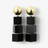 Paar Ohrringe; Stecker: Kugeln aus Gelbgold; Einhänger: Jett-Würfelchen und Gelbgold